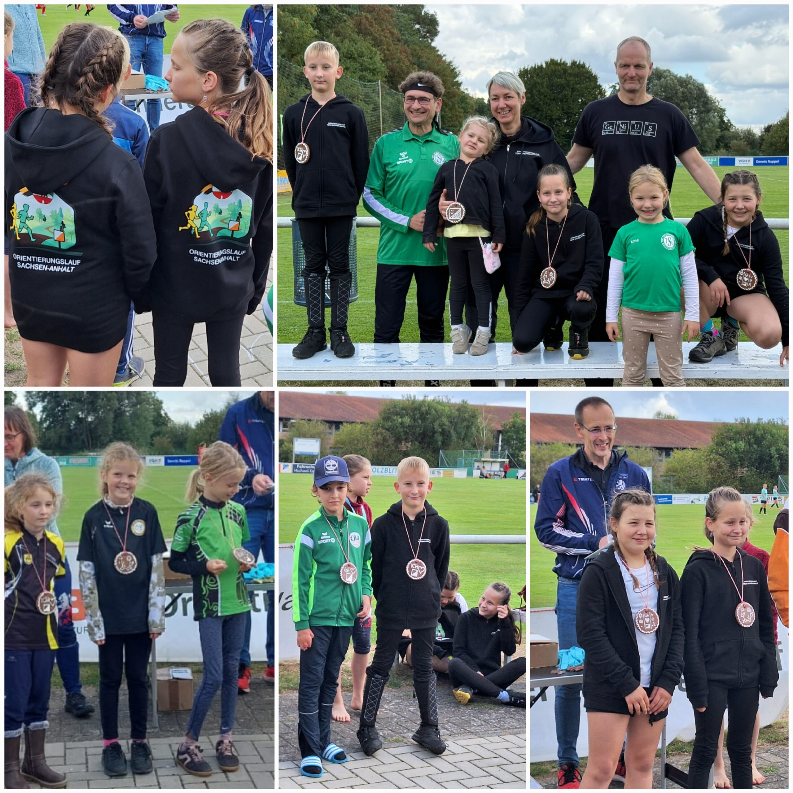 Eine Mutti berichtete: „Nachdem wir Sonntag 6 Uhr aufgestanden sind und mit vielen Fragen gefrühstückt hatten, kamen wir nach 1 Std. Fahrt am Sportplatz in Leiferde an. Vor Ort wurden wir von vielen Teilnehmern überrascht, das hatten wir so nicht erwartet. Wir haben uns alles zeigen lassen, wurden von unseren Trainern nochmal gestärkt und ausgestattet und sind dann 1,7km zu unserem Startpunkt in den Wald gelaufen. Am Start standen schon viele Läufer, warteten auf ihr Startsignal und wir mittendrin. Wir hatten richtig Lust mitzumachen. Es liefen nicht alle gleichzeitig los, sondern es gab für Jeden extra Startzeiten. Silke erklärte uns die Startprozedur: Chip vorzeigen, löschen und prüfen, Kompass in die Hand, Karte nehmen, einnorden nicht vergessen, und los geht’s. Für die Kinder gab es 8 Posten im Wald: an Wegkreuzungen, Lichtung, Senken, Hügeln… Bei einer Vielzahl von Wegen und Abzweigen galt es den Überblick zu bewahren und den richtigen Weg zu nehmen. Alle kamen gut ins Ziel und hatten viel zu berichten. Posten wurden alle gefunden, der eine oder andere Orientieurngs-Fehler hat Zeit gekostet aber als wir die Chips ausgelesen haben, kam die Überraschung. Für Enno in der H12 gab es Platz 3 und Frieda in der „Beginner kurz“ den 4. Platz und später sogar eine Siegerehrung mit Medaillen. Für uns Gäste aus Sachsen-Anhalt waren sie nicht aus Metall, sondern aus leckerem Lebkuchen.“
